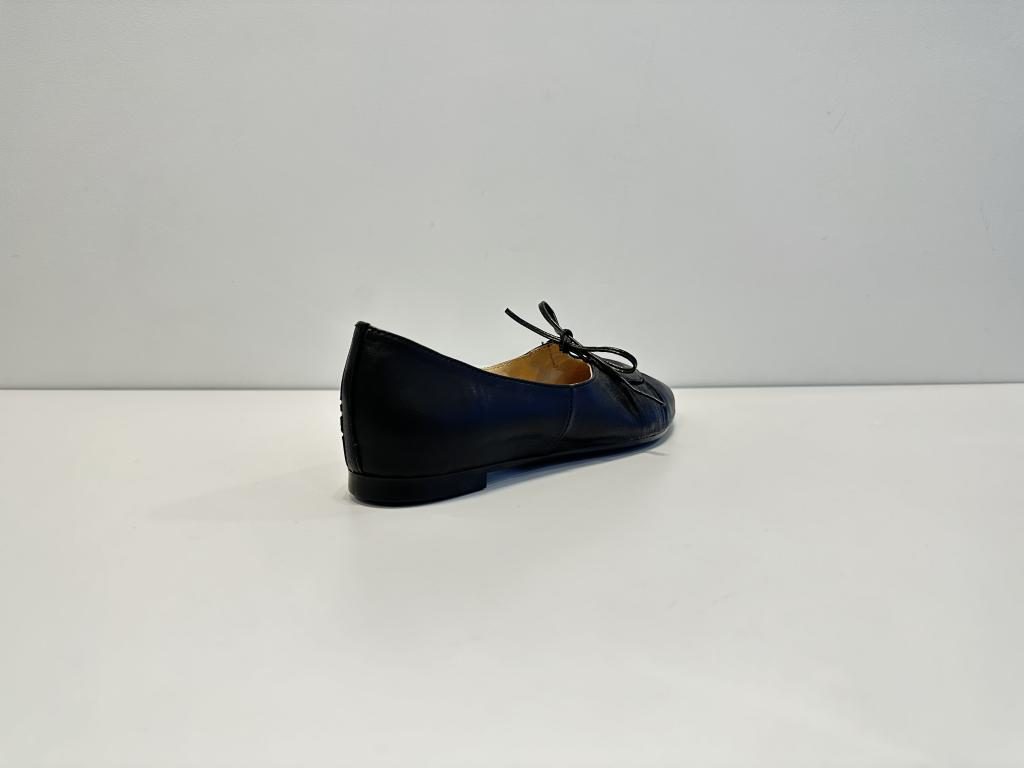 Ballerina in nappa nera, fodera e soletta in pelle e fondo in gomma con tacco di 1cm.