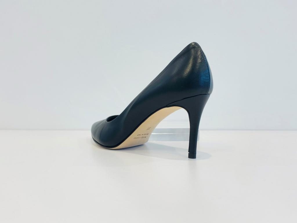 Decolleté in pelle nera, con fodera e soletta in pelle, fondo in cuoio e tacco di 6cm.