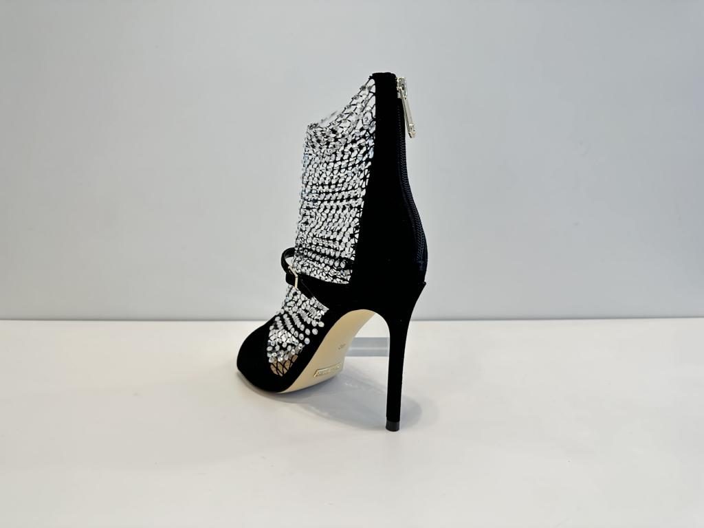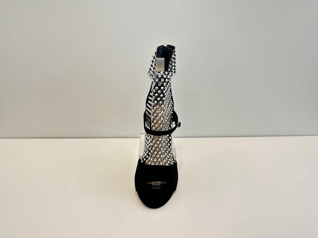 Sandalo Guess in camoscio nero, fodera e soletta in pelle e tacco di 10cm.